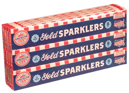 10" gold sparklers are a must-have for any celebration. They are made with a wire core, so they give off minimal smoke while burning with a bright gold sparkle.